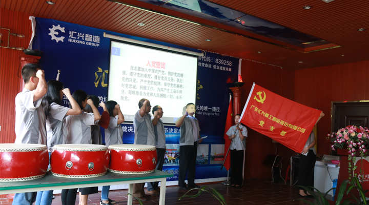 在大會(huì)上,匯興智造黨支部全體黨員上臺(tái)宣誓,重溫《入黨誓詞》,由匯興智造總工程師許光輝教授領(lǐng)誓,其余黨員們跟誓。在這莊嚴(yán)神圣的時(shí)刻,全體黨員表達(dá)了對(duì)中國共產(chǎn)黨的忠誠和信念。