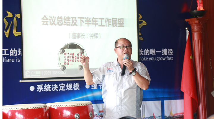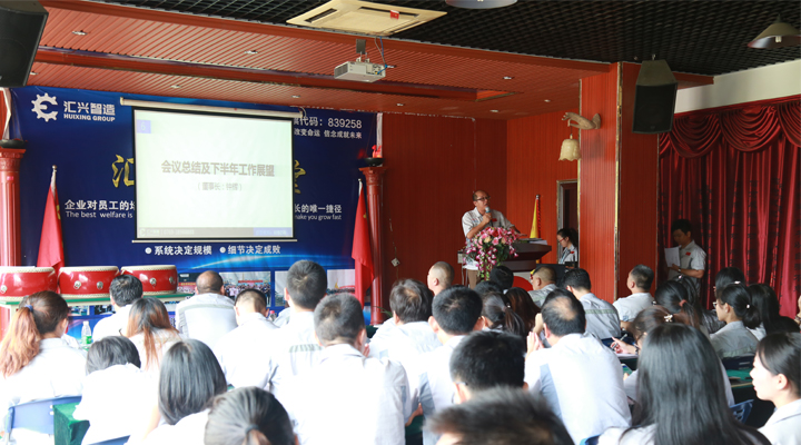 最后,由鐘輝董事長作會(huì)議總結(jié)及下半年的工作展望?;厥咨习肽?,經(jīng)過全體匯興人的共同努力,匯興智造的業(yè)績趕超去年一年,并再次交出了亮眼的成績單,以“優(yōu)等生”的身份成功晉級(jí)到新三板的創(chuàng)新層,這對(duì)公司未來的發(fā)展,特別是沖刺更高的資本巿場有著重要而深遠(yuǎn)的意義。作為植根于大嶺山的本土民營企業(yè),十七年來勤勤勉勉,絲毫不曾懈怠,也感恩大嶺山鎮(zhèn)這片熱土和好的營商環(huán)境,眾多領(lǐng)導(dǎo)干部、學(xué)者專家多次蒞臨匯興智造參觀調(diào)研和指導(dǎo),給匯興智造的發(fā)展建言獻(xiàn)策,增光添彩。匯興智造作為大嶺山鎮(zhèn)市級(jí)“倍增計(jì)劃”試點(diǎn)企業(yè),也是東莞市知識(shí)產(chǎn)權(quán)重點(diǎn)保護(hù)企業(yè),新近又被獲評(píng)為“2016年度廣東省守合同重信用單位”。今年五月份,企業(yè)倍增辦順勢成立,匯興智造力爭在兩年內(nèi),狠抓業(yè)績,推動(dòng)企業(yè)實(shí)現(xiàn)規(guī)模倍增、效益倍增、納稅倍增,一切以結(jié)果為導(dǎo)向,所有匯興人定以鐵一般的信仰,鐵一般的信念,鐵一般的紀(jì)律,鐵一般的擔(dān)當(dāng)、朝著既定的目標(biāo)奮勇前進(jìn)。