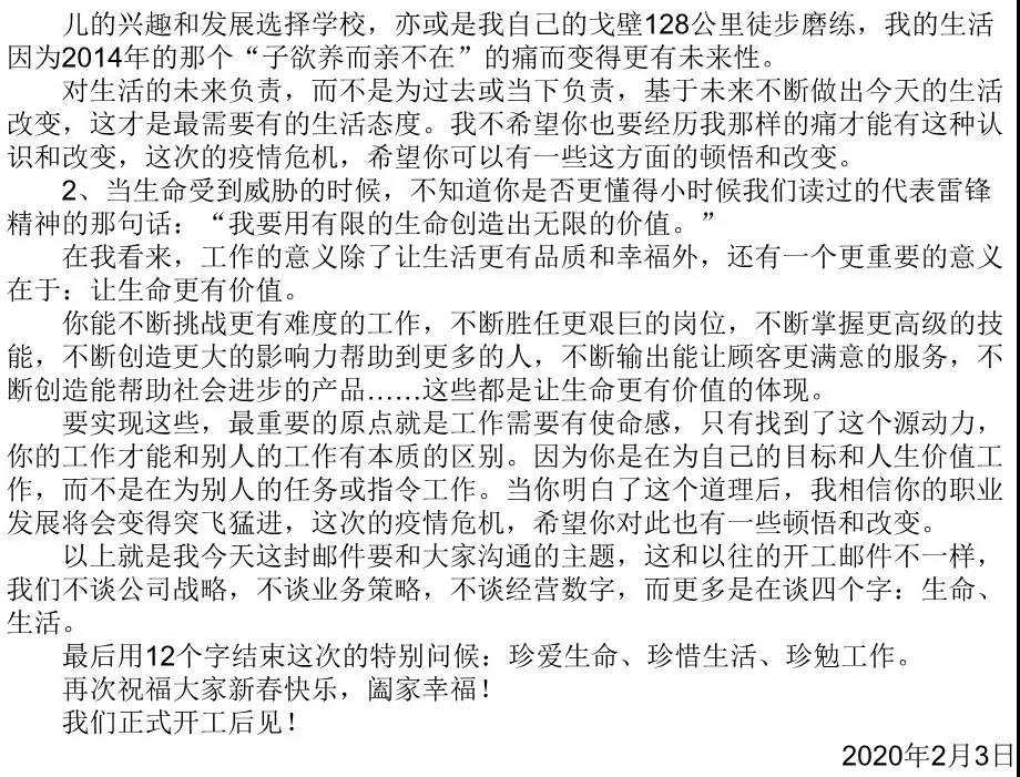 生命重于泰山!疫情就是命令!防控就是責(zé)任!愿肺炎疫情早日得到控制,山河無恙,天地皆安。面對疫情,政府也提倡“停課不停教,停校不停學(xué)”,今天初十是集團原定計劃的開工日,同理企業(yè)也應(yīng)提倡“停工不停業(yè)務(wù)”。我們隔離病毒,絕不去隔離愛,也絕不是隔離業(yè)務(wù)。