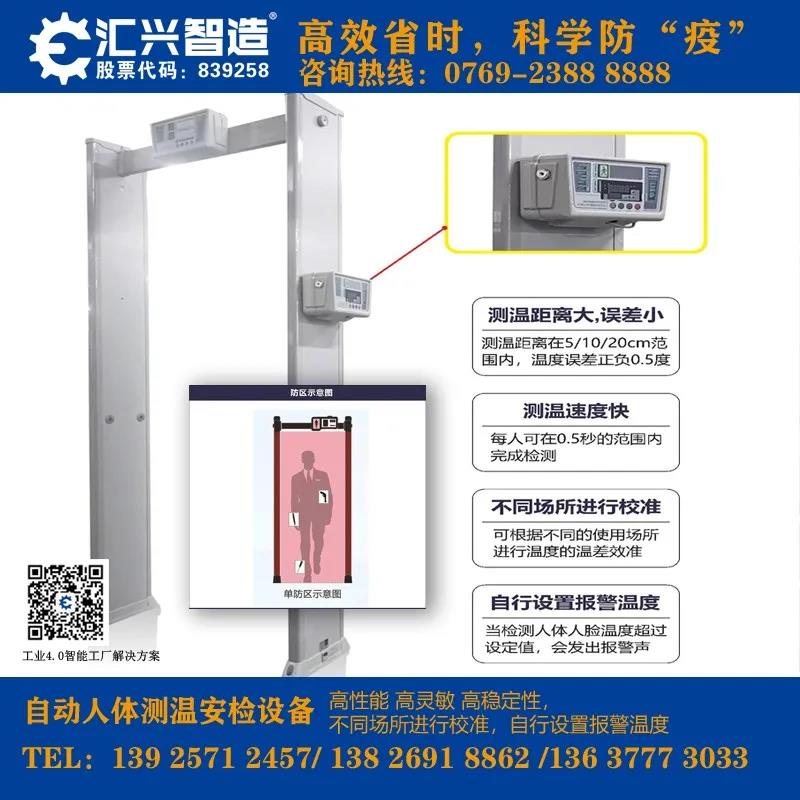 匯興智造人體測(cè)溫安檢門將集紅外測(cè)溫和金屬檢測(cè)為一體化,可對(duì)通過安檢門的人員進(jìn)行溫度測(cè)試,如若超過安全溫度閾值將聯(lián)動(dòng)安檢門聲光報(bào)警,有效對(duì)人員進(jìn)行篩查并建立首道防線。